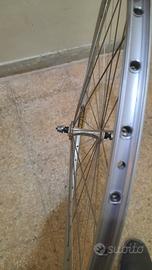 come foto ruota anteriore da 28 pollici per bici corsa vintage assemblata da officina bici con tutto pezzi nuovi mai montati,con cerchio AMBROSIO EXCURSION,mozzo a sgancio CAMPAGNOLO e raggi inox ,centrata e scorrevole, ripeto tutto nuovo per informazioni ulteriori foto contattatemi pure gradito ritiro a mano presso il mio domicilio bari citta eventualmente posso spedire se richiesto