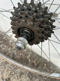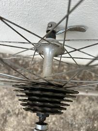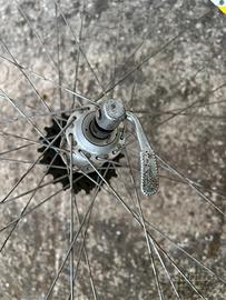 Vendo ruota posteriore per bici da corsa vintage eroica, cerchio per tubolare campagnolo omega, mozzo campagnolo chorus 1 generazione in buone condizioni ottima scorrevolezza ruota libera 6v