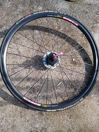 Ruota anteriore Handbike Wheelsbike speedlight 23", 9 rapporti 13/29, copertoncino Schwable nuovo, mozzo e nippels in ergal usata non più di 30/40km, busta originale, vendo per cessata attivita'. Praticamente come nuova immacolata.