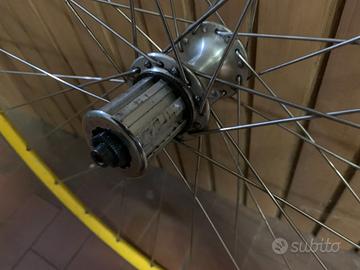 Vendo ruota in alluminio per bici da corsa con 32 raggi, già registrata e diritta.