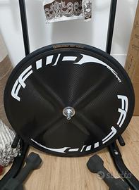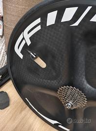 Ruota posteriore lenticolare in carbonio, per bici da cronometro triathlon. Grazie al suo design che la rende aerodinamica, offre prestazioni incredibili. Mozzo sigillato e corpetto shimano 11 velocità incluso