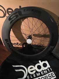 Ruota Lenticolare Deda Elementi SL Hero con soli 540 km (3 Ironman) completa Di pneumatico tubeless + Coppia Di Ruote Deda Elementi SL 88 disc, ruota anteriore con 540 km e completa Di tubeless, ruota posteriore nuova, mai usata e ancora inscatolata. Vendo anche separatamente (Lenticolare e Coppia)