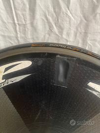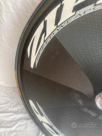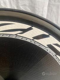 Ruota lenticolare zipp in carbonio, con corpetto da un lato per shimano, dal lato opposto per pista,