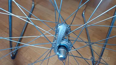 Ruota 28 come da descrizione con copertone Zaffiro e chiusura Shimano Close. Ottime condizioni. Preferibile consegna a mano.