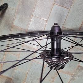 Vendo ruota posteriore per bdc shimano, con montato pacco pignoni shimano dura ace 12/25 a 10 velocità. Ruota usata solo nel periodo invernale sui rulli, non ha mai visto l'asfalto.