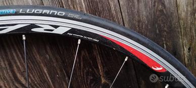Vendo ruota posteriore per bici da corsa completa di copertone Schwalbe Lugano Keylar 700x23C (23-622) Cerchio in buone condizioni, pista frenante ok.Compatibile con bici da strada. Copertone Schwalbe Lugano fulcrum/ raking 7 Misura 700x23C (23-622) 23 mm di larghezza Cerchio da bici da corsa Valvola Presta HS 38h