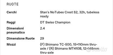 Ruota posteriore Crest smontata da bici Cannondale nuova , utilizzata per due uscite , compreso di pacco pignoni Deore 10/51 12v .