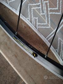 Ruota posteriore Mavic Aksium, per copertoncino e freni rim, usata poco solo sui rulli indoor (la pista frenante non è mai stata usata). Vendo senza pacco pignoni (con pacco pignoni SRAM Red 22 11v 11-28 prezzo €100). Eventualmente posso aggiungere copertone Vittoria Rubino usato sui rulli e camera d'aria.
