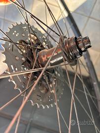 Vendo ruote Gravel perni passanti, con pacco opinioni 11 velocità Shimano Xt col 42 finale! Ruote nuove smontate da bicicletta nuova!12/100,12/142!