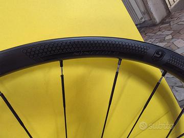 Generali - Formato ruota: 700c - Asimmetrico, profondità 25 mm, tecnologia Hookledge™ (anello ridotto per sicurezza tubeless) - Profondità cerchio: 25 mm - Larghezza interna: 20 mm Materiali & Design - Costruzione: Carbonio UD, asimmetrico, Hookledge™,assemblaggio artigianale nei Paesi Bassi Mozzi & Spoke - Mozzi: DT Swiss 180 EXP Ceramic - Interasse mozzi: 12×100 mm (anteriore), 12×142 mm (posteriore) - Numero raggi: 20 anteriori, 20 posteriori (2‑cross) - Raggi: 24 frontali e 24 posteriori, raggi Berd Dyneema, disposizione 2-cross Pneumatici e Pressioni - 23-28 mm (clincher o tubeless ready) Peso - Peso dichiarato set: circa 1008g (senza nastro e valvole) Capacità di Carico e Compatibilità - Peso massimo sistema bici+ciclista: circa 110 kg - Compatibilità corpetti: SRAM XDR (in dotazione), Shimano