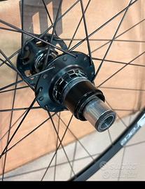 29” alluminio, non boost, corpetto SRAM XD. Attacco disco 6 fori. Nastrate tubeless con valvole comprese. Misura candela interiore 21 mm 12x142 posteriore 15x100 anteriore Perso 1,6 kg