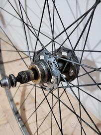 Vendo ruote per bici da corsa vintage,a tubolare. mozzi con flangia alta, marchiati Ambrosio