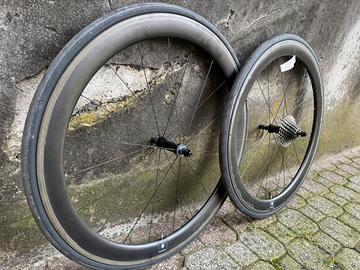 Ruote artigianali Mantel R50 TLR in carbonio per copertoncini vendute da negozio.
