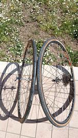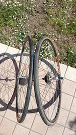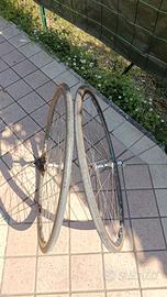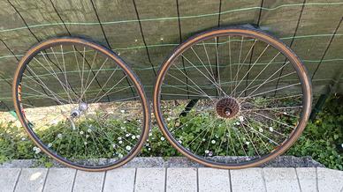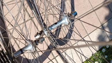 Coppia ruote per bici corsa vintage Cassetta Shimano 14/28 Sgancio rapido mozzo campagnolo record 36 fori. Prezzo 50 NON TRATTABILE VISTO E PIACIUTO PRECEDENZA AL RITIRO A MANO