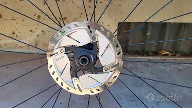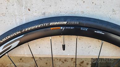 Coppia ruote Shimano RS100, complete di pacco pignoni 11V, dischi freno SHIMANO 160 ant - 140 post, gomme Vredstein Fiammante, 25mm omaggio. OTTIMO STATO