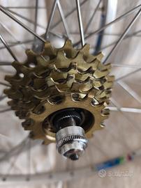 ruote in alluminio bici corsa vintage per copertoncini marca nisi, mozzi campagnolo,ruota libera a sei rapporti 13/21 ,36 raggi.