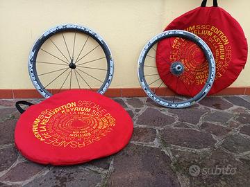 vendo bellissime ruote Mavic Cismic Carbone SL con pista frenante in alluminio. corpetto shimano/sram 10/11 velocità compreso nel prezzo regalo le borse. le ruote sono perfette!!! Solo ritiro a mano