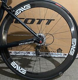 Vendo ruote bici da corsa in carbonio Dt Swiss rim brake, modello RC 820R 46 copertoncino(camera d'aria), corpetto shimano 11v (adesivi enve, alcune zone del cerchio sono più lucide per via della rimozione degli adesivi originali) profilo 46. Piste frenanti in condizioni accettabili, ma non adatte per percorrere migliaia di chilometri, ottime come secondo paio di ruote. In alcune zone dei raggi manca un po' di vernice, ma ciò non influisce sul corretto funzionamento dei cerchi.