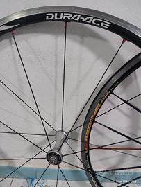 Ruote bdc anteriore Shimano Dura Ace 640 gr Posteriore Mavic Ksyrium edition speciale Anniversario Helium 850 gr