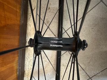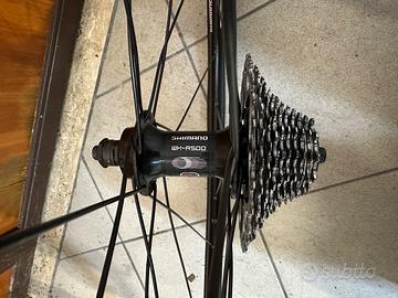 Ruote in ottimo stato. Pacco pignoni Sram 10v 11-28. Mozzi appena revisionati. Copertoni Vittoria Zaffiro 700x25 con battistrada in ottimo stato e spalle con qualche segno del tempo.