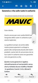 Vendo cerchi in carbonio (senza copertoncini) per bici da strada MAVIC - modello Cosmic S42 DISC - usate pochissimo nessun graffio - condizioni ottime!! Profilo 42 mm - Garantite a vita dalla casa madre (certificato). Listino Euro 1.000