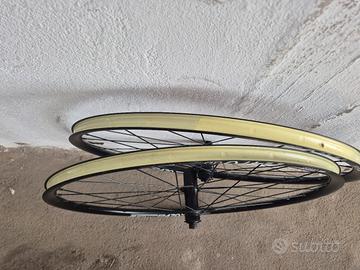 Ruote bici DT Swiss R470 db come nuove per freni a disco. Già nastrate per Tubeless, utilizzabili anche per camera d'aria tradizionale. Nessun difetto