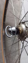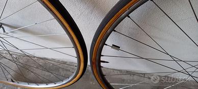 Vendo coppia ruote in ottimo stato perfette per bici da corsa vintage/eroica con le seguenti caratteristiche : mozzi Campagnolo record a 36 fori con cerchi Nisi per tubolari, sganci rapidi originali Campagnolo, tubolari come nuovi e perfettamente incollati, vengono cedute complete di ruota libera Regina extra 6 V scala 13/23