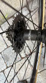 ruote ciclismo da gara marca 3t (adesivi ursus attaccati per sponsor personali), usate pochissimo, paccopignone shimano in titanio 12 velocità, vittoria corsa pro e dischi galfer superleggeri, mozzi ceramic speed (con cuscinetti ceramici, super scorrevolezza)