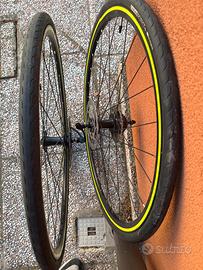 Vendo coppia ruote bici corsa Triban rc520. Vendute da decathlon. Vanno bene per ogni tipo di bici da corsa o gravel. Corpetto Shimano. Le ruote sono complete di tutto, pronte per circolare. Condizioni pari al nuovo. Consegno a mano a Ferrara o zone limitrofe.