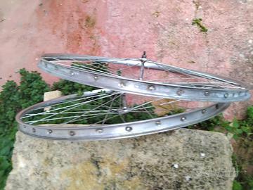 ruote per umberto dei superleggera, flange in alluminio, riraggiate a nuovo con raggi stella 1.8, ruota 28, ruote dritte perfette perfette