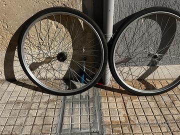 Ruote bicicletta tipo R con cerchi in alluminio misura 26 x 1 /3/8 complete di copertoni e ruota libera pari al nuovo.