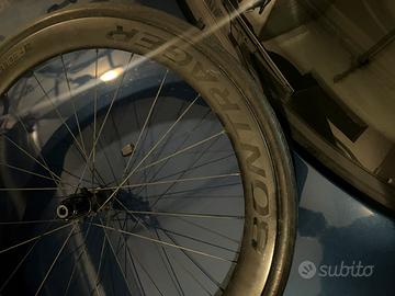 ⸻ Vendo ruote Bontrager Aeolus PRO 5 Disc. L’anteriore è in ottime condizioni. La posteriore viene venduta solo per ricambi, in quanto è leggermente lesionata e non fornisco alcuna garanzia per il suo normale utilizzo. In teoria potrebbe essere utilizzata, ma in caso di urti (ad esempio prendendo una buca) potrebbe rompersi e creare un serio pericolo per il ciclista. I raggi e il mozzo di entrambe le ruote sono perfetti. Entrambe le ruote montano copertoni tubeless TUFO. L’anteriore è in ottime condizioni, mentre il posteriore, a mio parere, è inutilizzabile (leggermente danneggiato/lesionato).