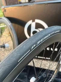 Vengono vendute comprensive di copertoni Pirelli Pzero Race da 28mm nuovi e dischi Shimano Dura Ace 160/140mm con camere Tubolito . Aggiornato e sostituito 20gg fa’ i cuscinetti di serie (Enduro Bearings) con cuscinetti ceramici C-Bear (200€) per una scorrevolezza impeccabile. Ruote estremamente performanti e perfette. Le vendo solo per inutilizzo avendo trovato un set di ruote “definitive” per il mio utilizzo quindi queste son pressoché inutilizzate.