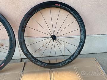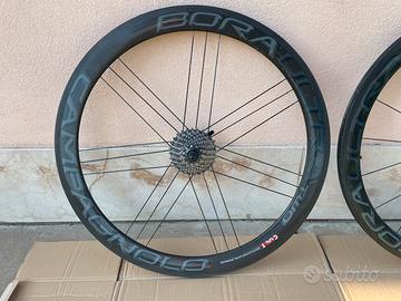 Vendo per inutilizzo ruote Campagnolo Bora One 50 mm per tubolari, le ruote sono in buone condizioni e tenute bene le ho utilizzate poco avendo 3 paia di ruote.Sono con cuscinetti normali NON ceramici , hanno adesivi Bora Two messi solo per estetica ma sono le Bora One!sono senza tubolari e con Corpetto Shimano 11v.