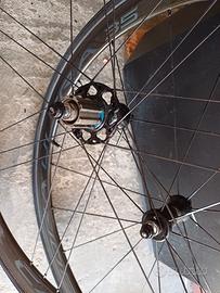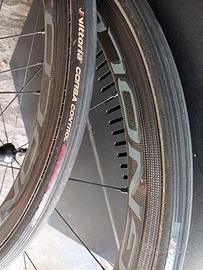 ruote campagnolo bora 35 con tubolari vittoria al 90%, tenute molto bene. per pattini e ruota libera campagnolo