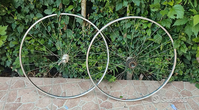 Vendo coppia di cerchi corsa vintage in alluminio superleggero da 28" (700) Fiamme con mozzi e sganci rapidi Campagnolo, cassetta 6v Caimi Castano Everest, per palmer/tubolari.