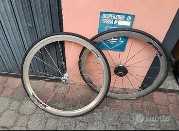ruote campagnolo shamal a 8 rapporti. buono stato. solo piccolo bozzetto evidenziato in foto. non spedisco. solo ritiro a mano.