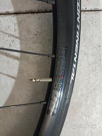 Ruote alluminio in perfette condizioni solo 500 km smontate da cannondale caad 13, complete di dischi 160 e copertoncini, sono molto robuste adatte anche per il gravel