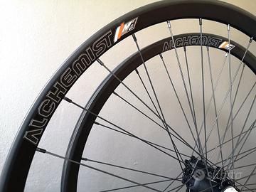 Ruote nuove nastrate, mai fatto strada, montate su bici expo. Le foto si riferiscono a quando erano smontate, ora sono tubeless con gomme Vittoria Mezcal, nastro/valvola/lattice Muc-Off.