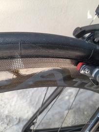 Ruote Campagnolo in buone condizioni,corpetto shimano 11v, tubolari continetal 70%, con pattini campagnolo carbonio.