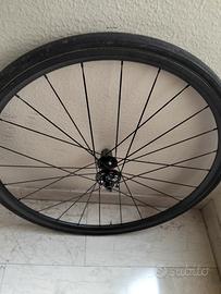 ruote in carbonio x bici corsa o gravel perno passante da 12 corpetto schiumano 11 rapporti montano tubolari da 28 raggi sono 24 scorrevoli nessun lavoro da fare