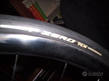 Vendo coppia ruote ENVE 2.3 complete di coperture Pirelli Pzero Road 700/28, pacco pignoni da 11 velocita' 11/34 e dischi braking da 180mm, il tutto pari al nuovo