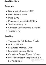 Ruote utilizzate 1 stagione per circa 6000km,perfette in tutto non presentano segni d'usura. È fornita fattura d'acquisto del 05/03/2025 e possibilità di registrarle sul sito FFWD per garanzia a vita. Caratteristiche descritte nella foto allegata. Vengono vendute con valvola tubeless inclusa e nastrate, ma SENZA copertoncini,dischi e pacco pignoni. Prezzo leggermente trattabile