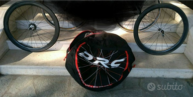 Ruote carbonio Marchisio SL 38 con tubolari Tufo, con sacca portaruote, con pacco pignoni 10 rapporti, senza fermiruota.