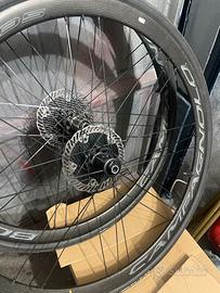 Vendo ruote campagnolo Bora one 35 montate con copertoni shalbe tubles nuovi, appena montati le ruote sono perfette come nuove non hanno segnii e sono centrate vendo per cambio progetto