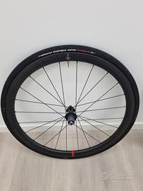 Vendo ruote Wilier 38 ndr, montate con tubeless Vittoria da 28mm. Ruote con pochi mesi di vita, smontate da bici nuova. Corpetto shimano.