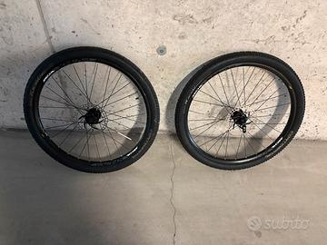 Vendo coppia di cerchi con copertoni e dischi già montati AttenIome ruota anteriore Tubeless mentre la ruota posteriore ha un leggero schiacciamento e ha la camera d’aria