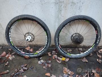 Vendo le ruote in oggetto, DT swiss xcr 1.7 montate con copertoni schwalbe racing Ralph 2.1 e dischi avid 160. Ruote e copertoni tubless ma montate con camera d'aria. cassetta non compresa. Ottime condizioni, dritte girano benissimo, qualsiasi prova spedisco in tutta Italia con sovrapprezzo