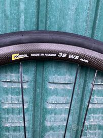 Vendo coppia di ruote in carbonio per freno a disco Corima WS 32 anno 2024 pari al nuovo senza alcun graffio e corredate di copertoncini nuovi, pacco pignoni shimano 12 v. + freni disco