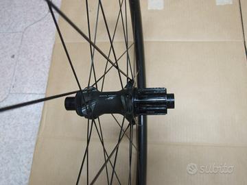 Ruote in buonissimo stato ,molto leggere (circa 1,400Kg)mozzi 240 perno anteriore 100,posteriore 142,complete di accessori (adattatori per diversi perni, corpetto sram,valvole per tubless e certificati di garanzia)corpetto montato shimano HG. vendo per cambio bici.no offerte assurde.